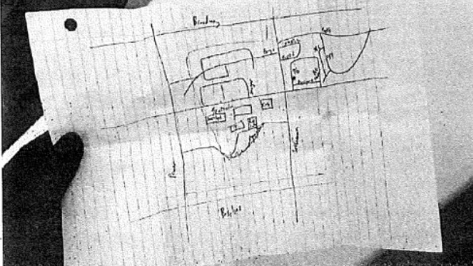 The man accused of burning a Cybertruck in Mesa allegedly had a handwritten map of the Tesla dealership. (KSAZ-TV; United States District Court for the District of Arizona)