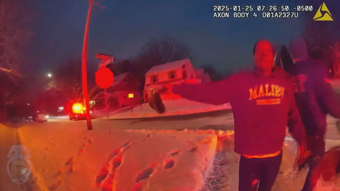 In the bodycam video, an officer is seen running on the sidewalk in front of the home where he approaches 46-year-old Roconda Singleton, who was taken into custody after GRPD determined the fire was deliberately set.