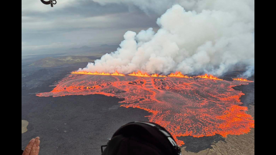Lava from the eruption is flowing southeast from a fissure in the barren landscape that is 700 to 1,000 meters (2,296 to 3,280 feet) wide, but the molten rock isn’t threatening any infrastructure, the Met Office said.